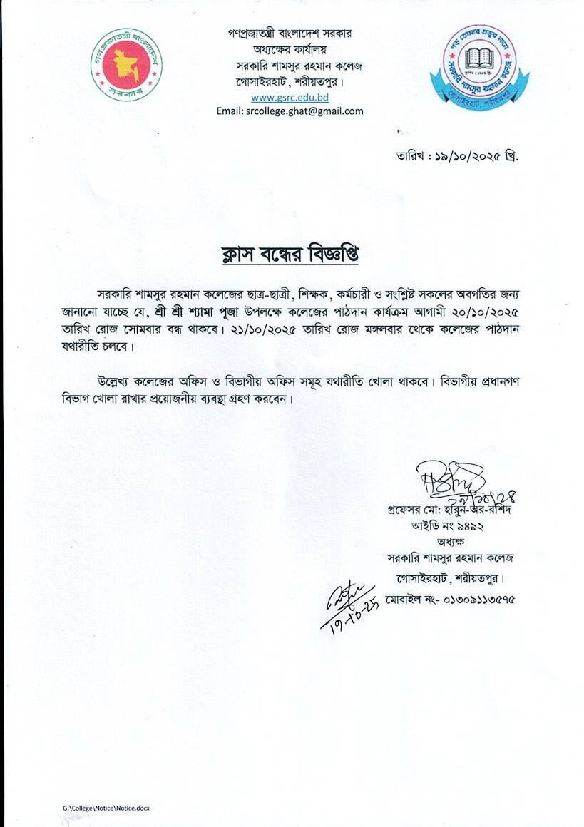 ক্লাশ বন্ধের বিজ্ঞপ্তি।.....