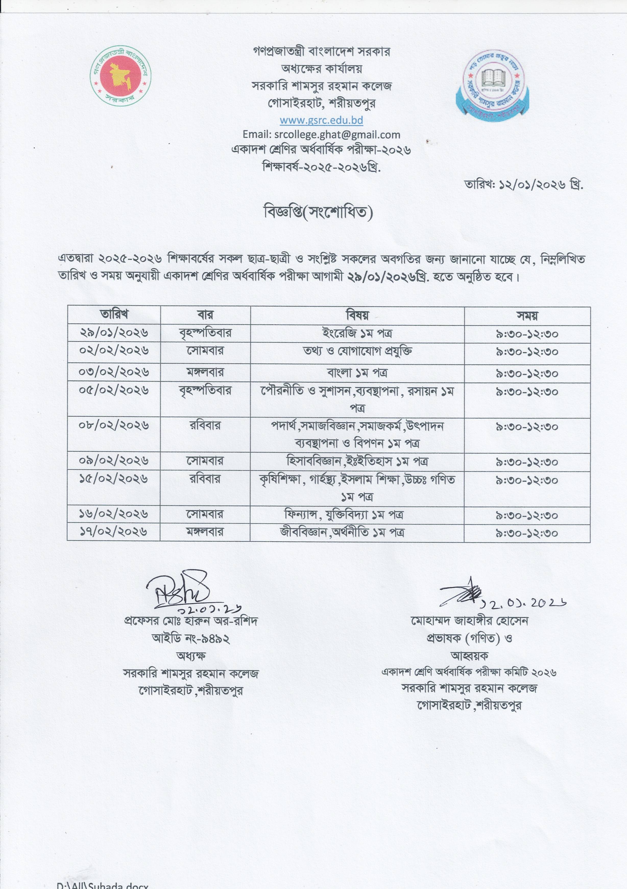 একাদশ শ্রেনির অর্ধবার্ষিক পরীক্ষা সংক্রান্ত বিজ্ঞপ্তি (সংশোধিত).....