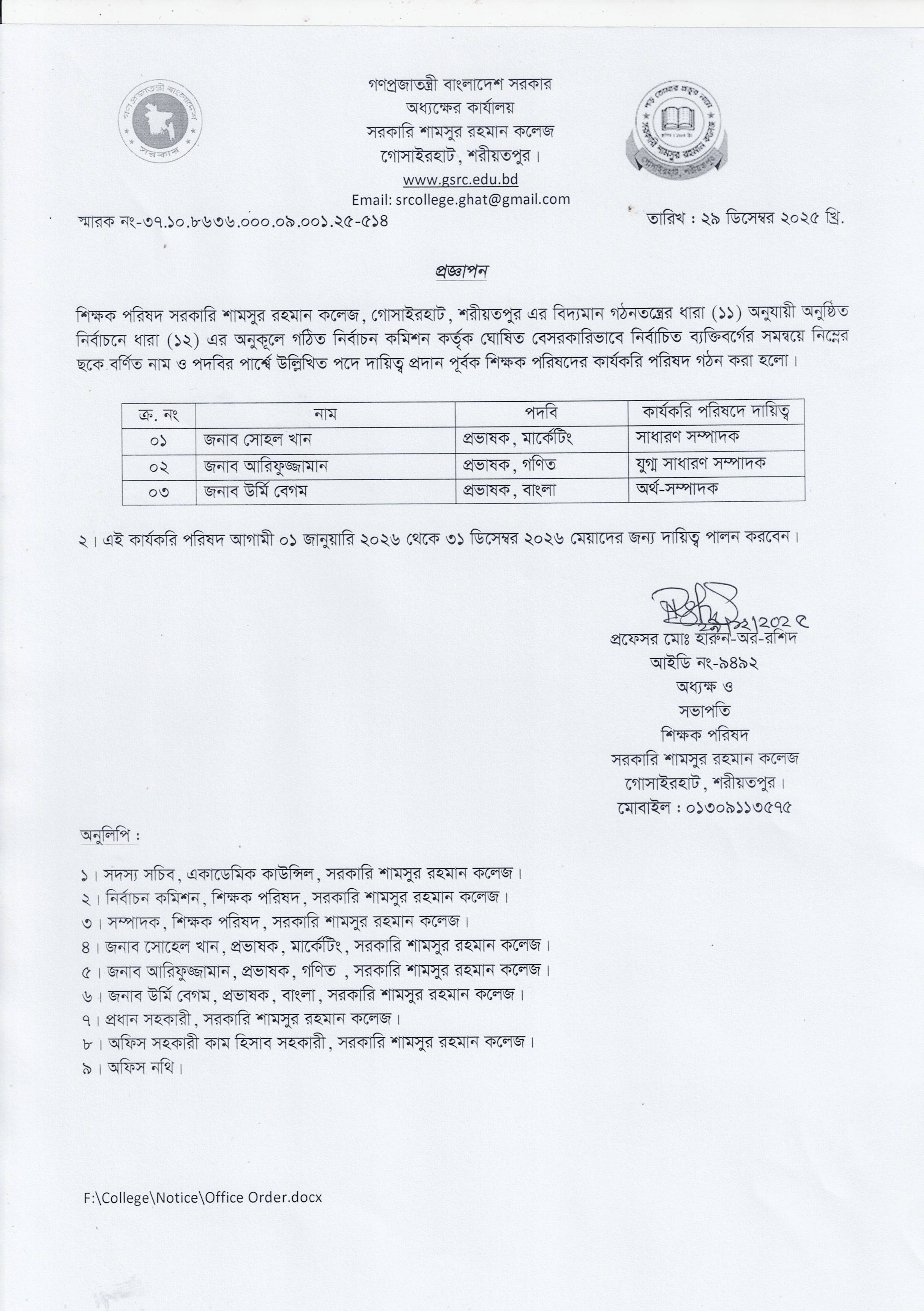 শিক্ষক পরিষদ নির্বাচন-২০২৬ এর প্রজ্ঞাপন |