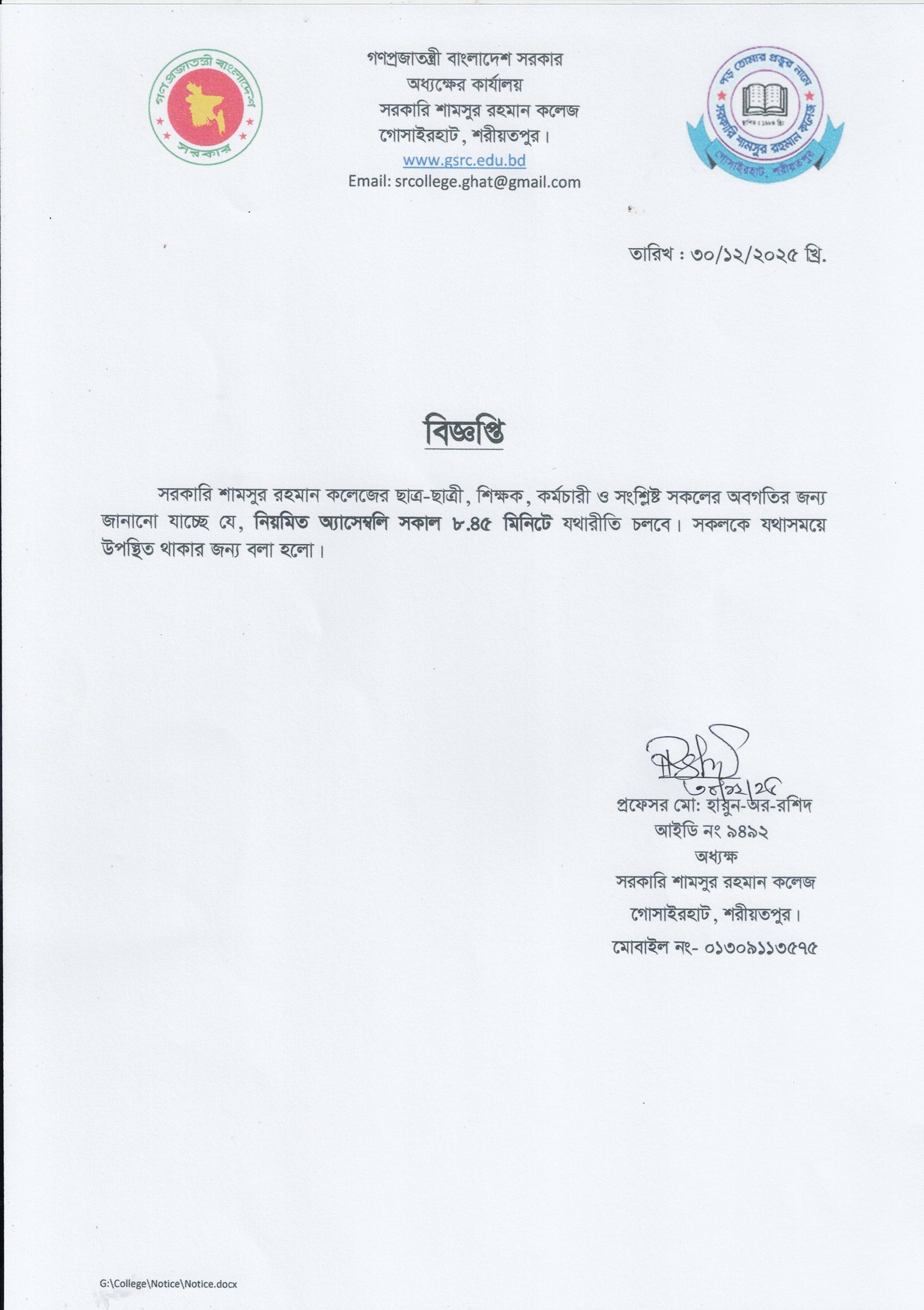 অফিসে উপস্থিতির বিজ্ঞপ্তি |